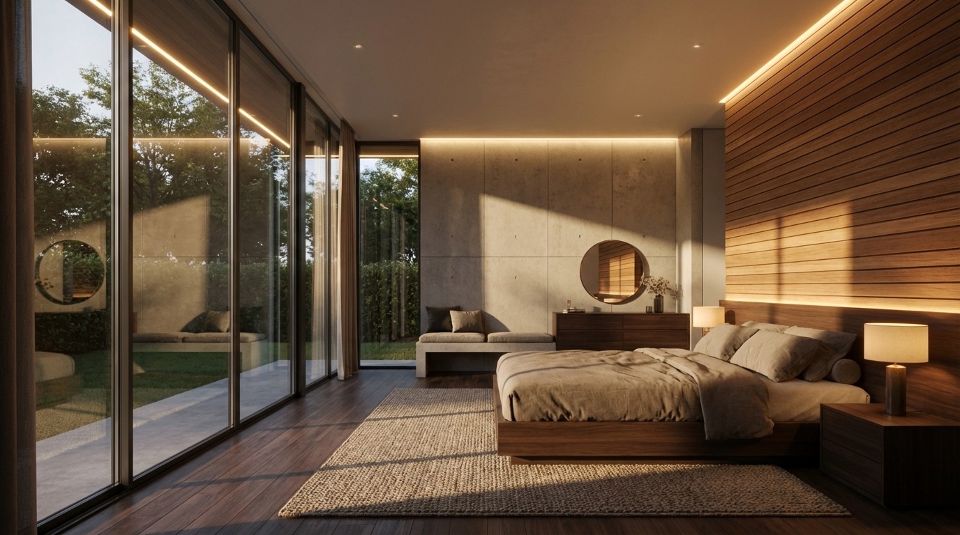 Defined by its bold, angular geometry, this residence articulates a seamless integration of modern luxury and organic warmth. The design prioritizes a fluid visual continuity, using light and material contrast to create a home that is both a striking sculptural object and a serene, light-filled retreat